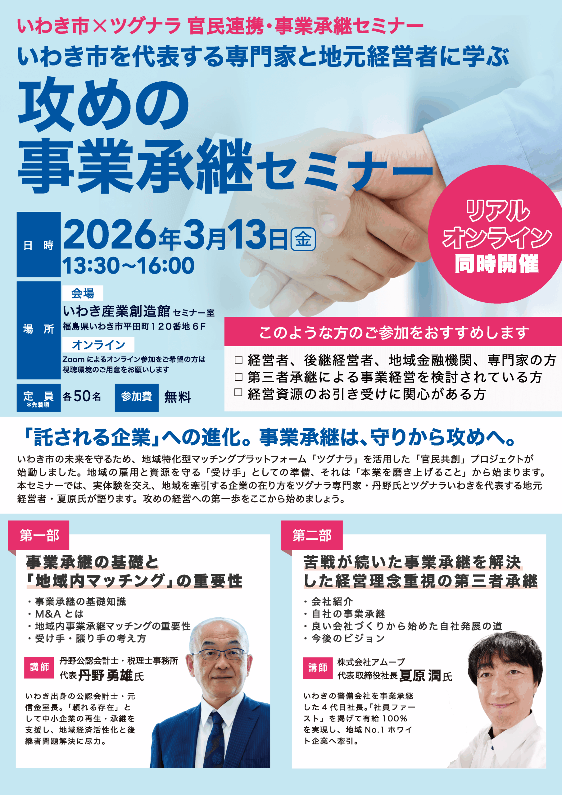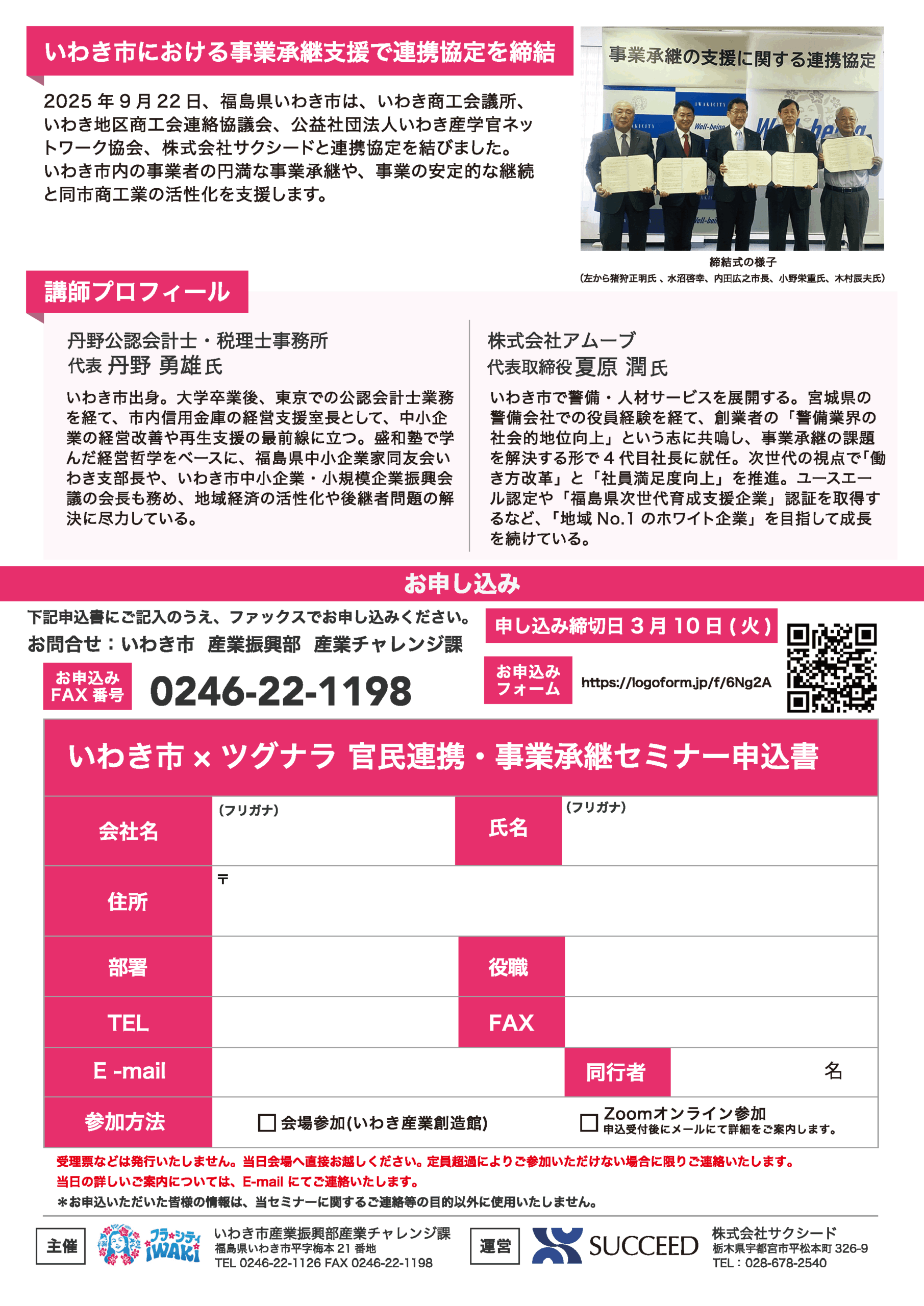 ※本セミナーは、主催:福島県いわき市、運営:株式会社サクシードが行なっています。
