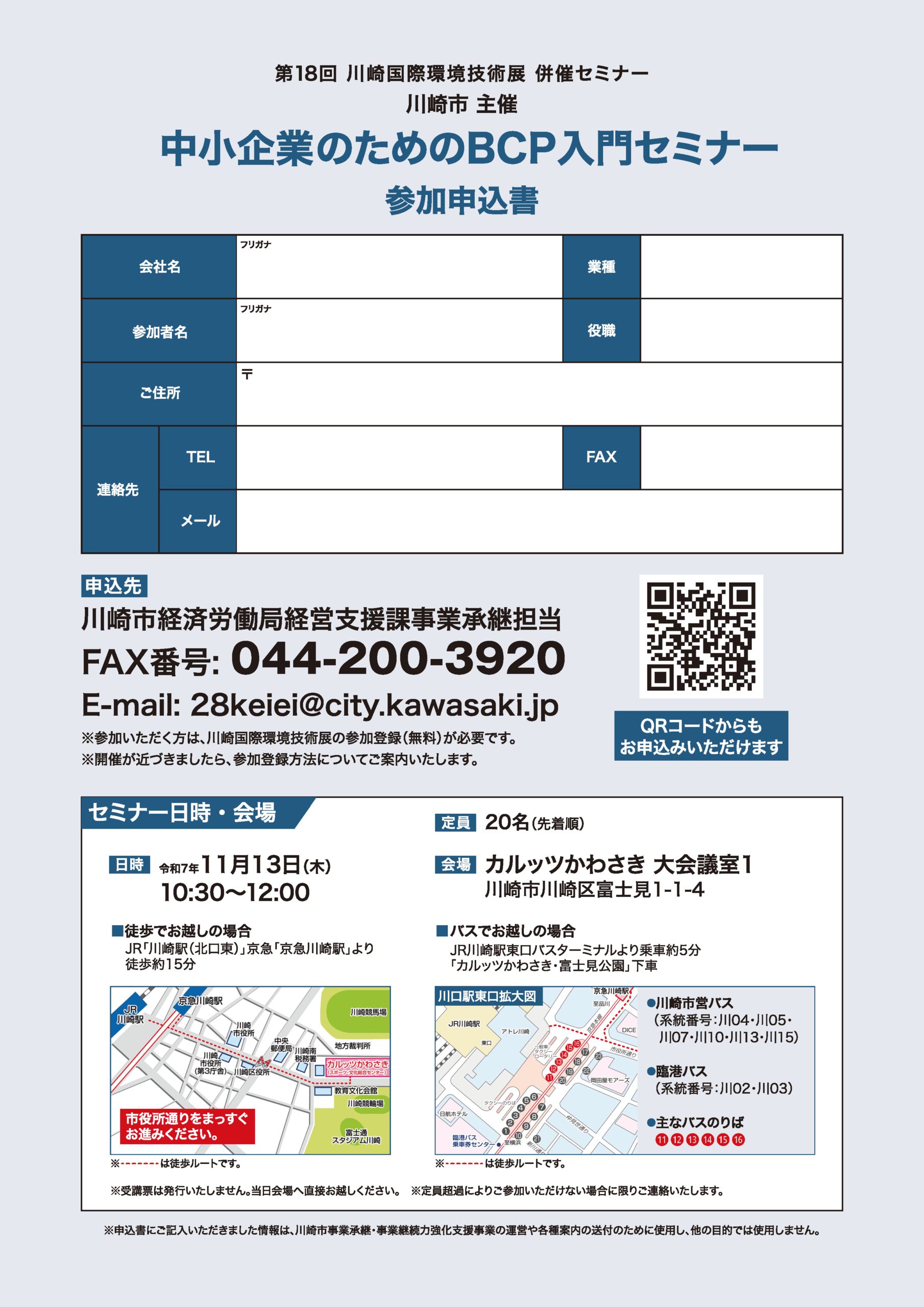 送信先:川崎市経済労働局経営支援課事業承継担当